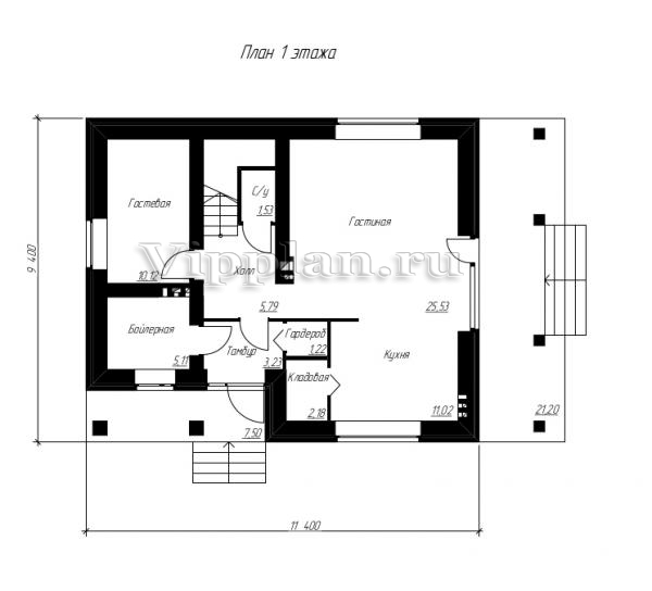 | Размеры дома: | 9.4м×11.4м |